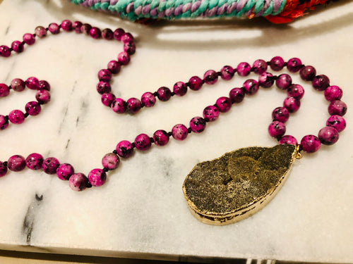 Pink & Brown Druzy Drop Stone Long Statement Necklace
