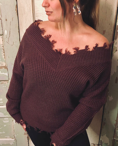 Eggplant Balloon Sleeve Waffle Sweater
